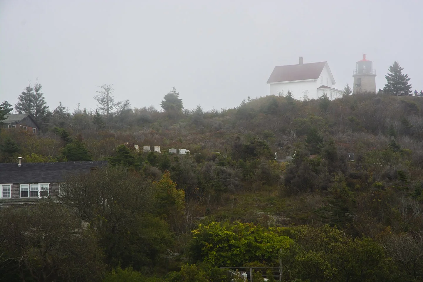 We walk on dirt roads passed places to stay and eat. The land was hilly and we could see the Monhegan Light House from a distance up another hill along with residents houses. There were lobster boats moored in the harbor while we walked passed the post office, the Monhegan Community Church and the Monhegan House a place to stay.